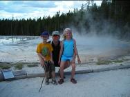 Sebastian, Kaj and Hannah near Old Faithful in Yellowstone Park |
